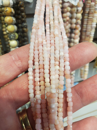 PINK OPAL FACETED CUBE 3-3.5MM
