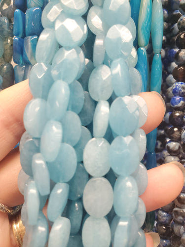 AGATE OVAL LT BLUE BEADS 12x9MM