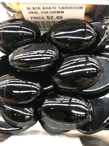 BLACK AGATE CABOCHON OVAL 25X18XMM