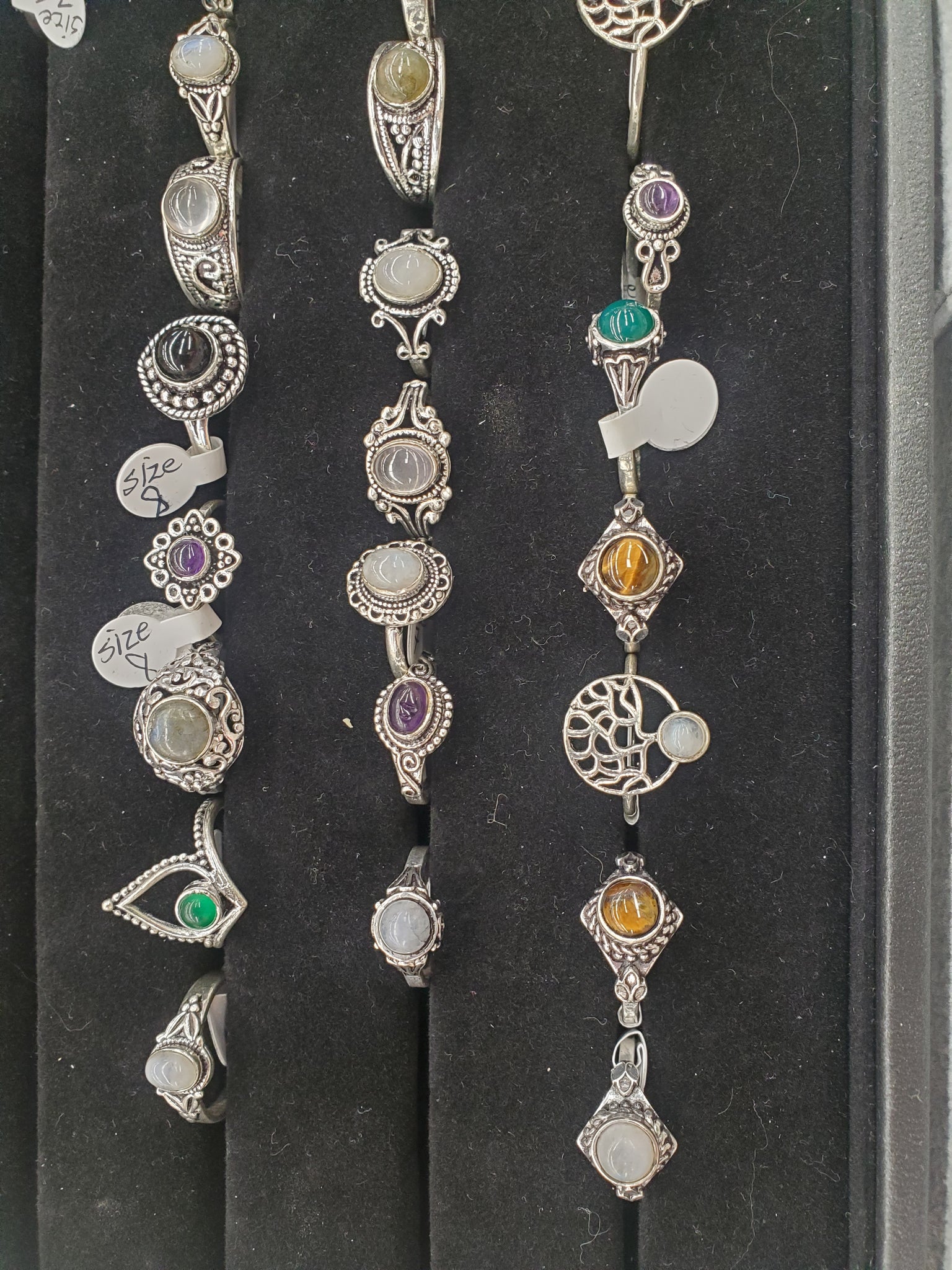 assorted natural gemstone rings
