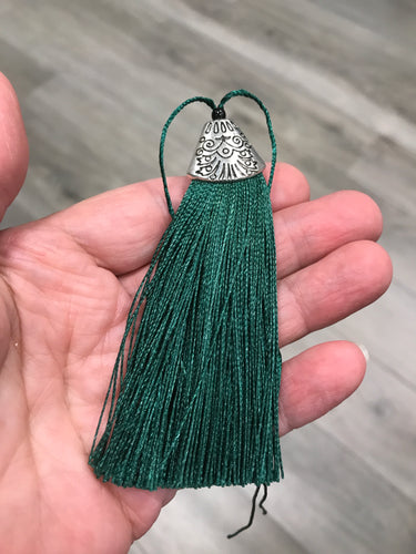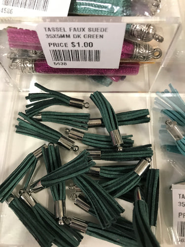 TASSEL PLASTIC FINDING 80X20X11MM DK GREEN